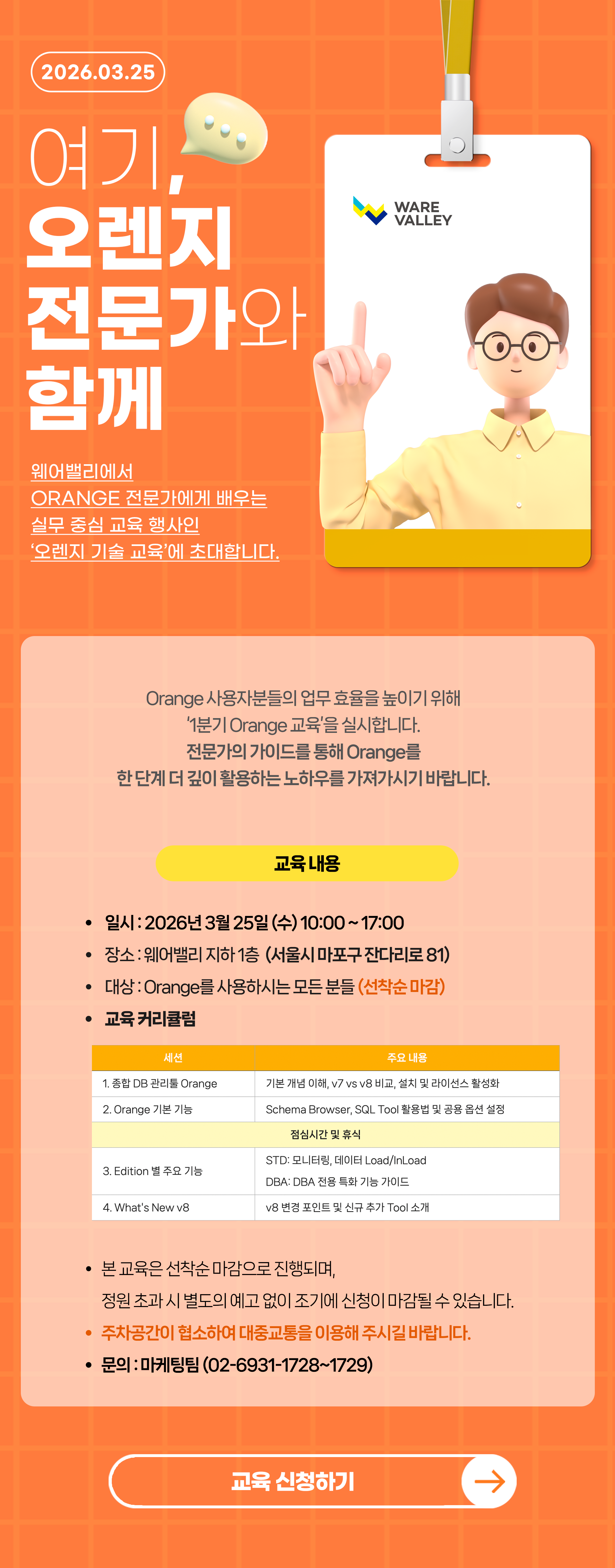 2026 1분기 웨어밸리 오렌지 교육 신청 안내