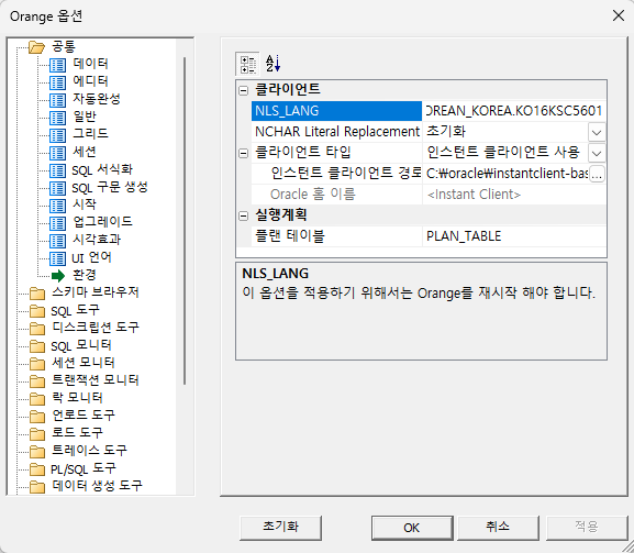 Oragne for Oracle 7.0 DBA 사용 중입니다.