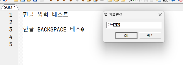 탭 이름 변경이나, 스크립트에 한글 작성 후 지웠을 때 사진처럼 깨지는데, 어떻게 해결할까요?