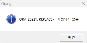 그런데 패스워드에 특수문자가 포함되면 ORA-28221 에러 창이 발생합니다.
